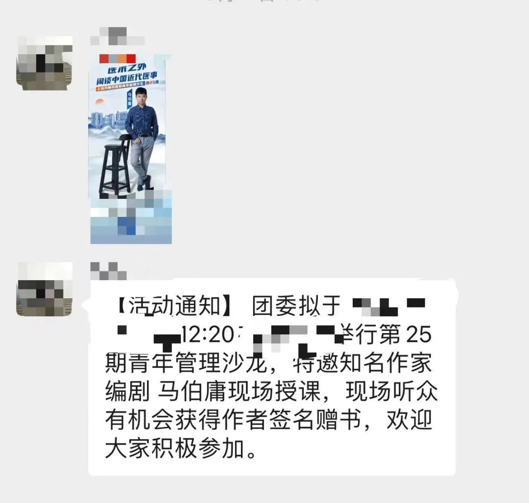 再仔細看看通知,原來是我們醫院團委請了馬伯庸來講課。