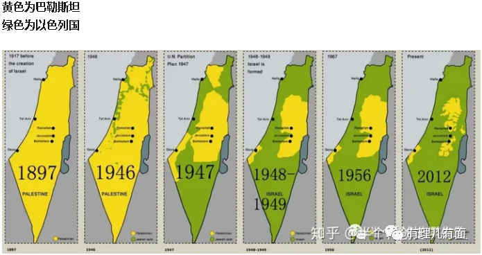 通過前後五次中東戰爭,在美國的軍事直接援助下,以色列不但佔領了原屬巴勒斯坦的國土,而且軍事能力在中東首屈一指,世界各國正式承認以色列作為獨立國家的存在。