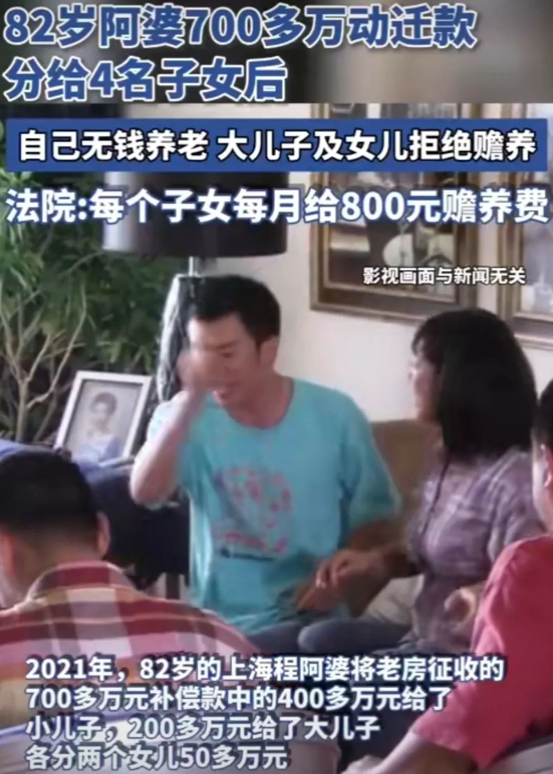 上海一阿婆將700萬動遷款分給4子女,仍無人願意贍養?_風聞