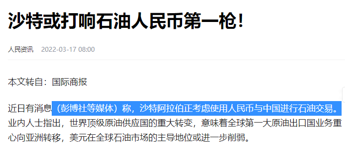 當然了,我認為,短期內沙特還不會動美國的“命根子”。