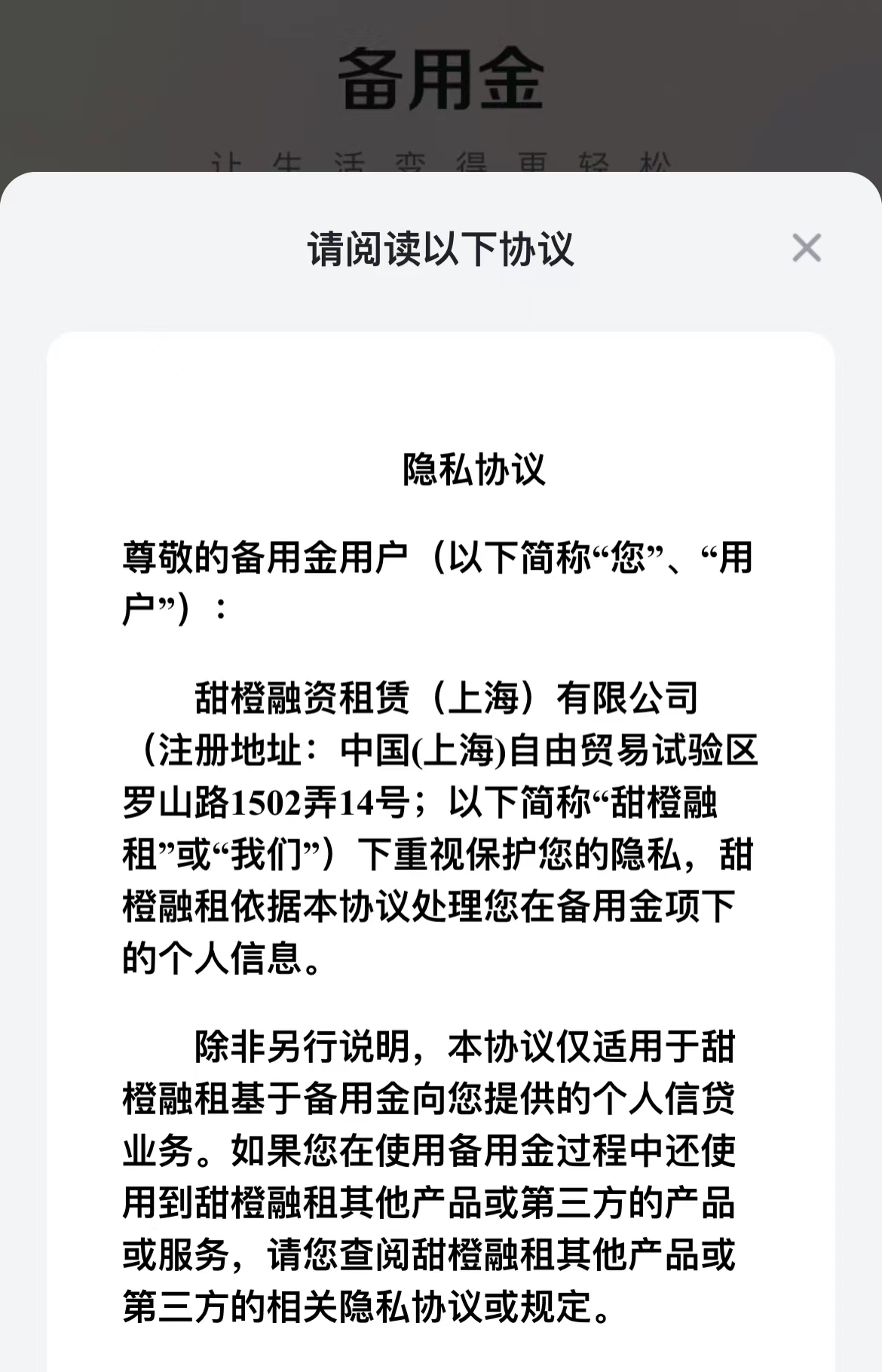 根據服務協議,甜橙融資租賃作為場景消費金融綜合服務顧問,具備運營及技術支持能力,將與各類金融機構合作,包括商業銀行、消金公司、信託公司,為用户提供消費金融需求解決方案。甜橙融租作為備用金運營主體,在備用金服務中提供運營服務和技術服務。
