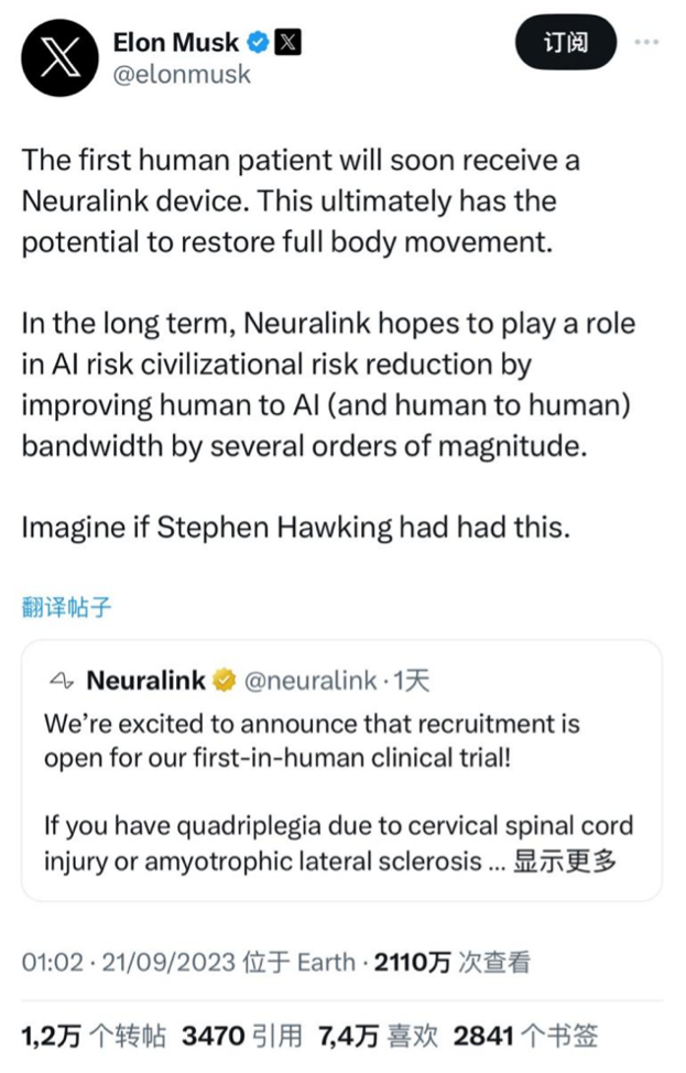 “如果能讓坐在輪椅上的人重新走路,大家立馬就會明白Neuralink的重要性。這一定能直擊人心。”
