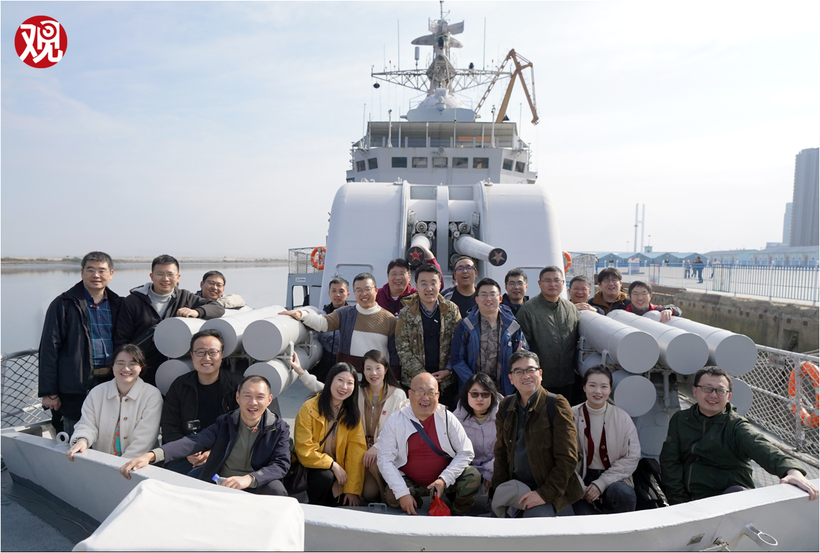 在第二天的行程中,我們造訪了丹東艦。養雞曾發文撰寫過有關丹東艦歷史沿革的詳細介紹,此處不再贅述。但值得一提的是,養雞的該篇文章被官方選中並懸掛在丹東艦內部。於是我們見證了詭異的一幕-養雞姥爺站在自己寫的文章前講述自己的文章。丹東艦內部上下樓梯頗為陡峭,但內部構造相比此前觀網組織參觀的潛艇寬敞很多(當然這兩者沒有太大可比性)。丹東艦作為當時美艦來訪參觀的主要艦艇,秉承着裝備技術雖然落後但氣勢和精氣神不能輸的原則,在內飾、電路等細節上嚴格把控質量。養雞還講述了時任丹東艦艦長尉偉在不違反上級規定情況下,敢於向不斷前來騷擾的美軍海上巡邏機開信號槍驅離,這種精神也被傳頌至今。