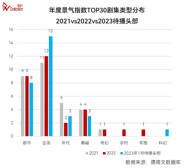 與之相對的,是古裝劇、年代劇、青春劇的持續下滑,都市劇説是獨佔鰲頭也不為過。