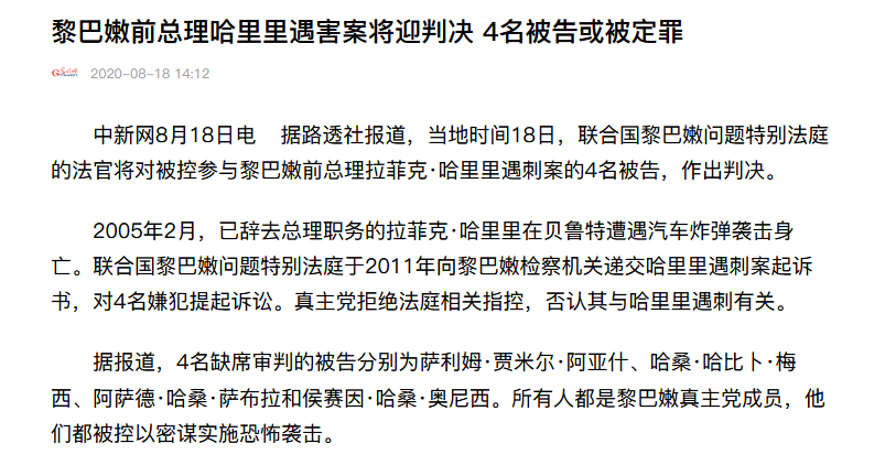 儘管缺乏直接證據,黎巴嫩公眾將憤怒的矛頭直接指向敍利亞。面對越來越大的反抗聲浪和國際社會的壓力,小阿薩德宣佈從黎巴嫩撤軍,結束了敍利亞對黎巴嫩三十年的軍事幹預。