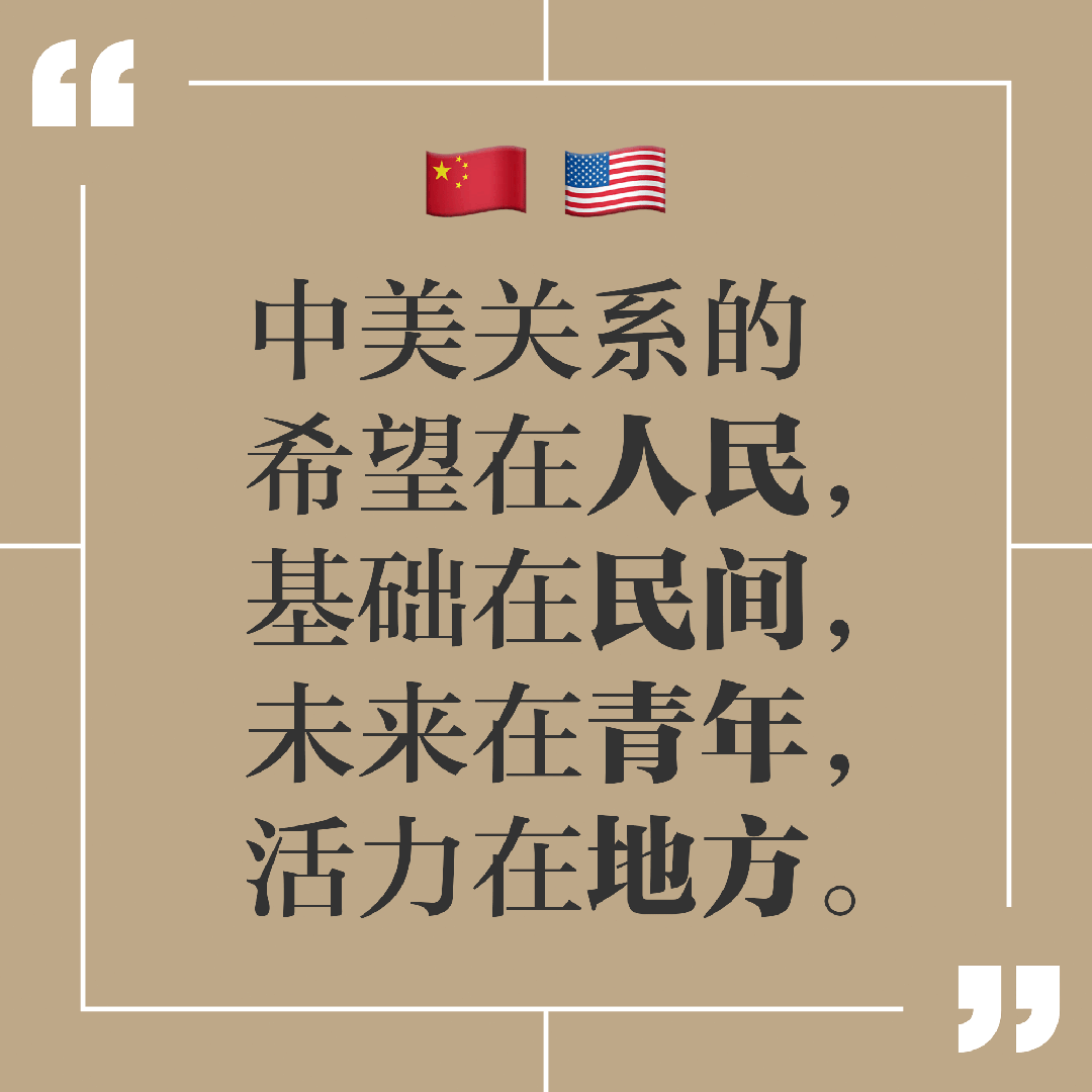 慶幸的是,辯證唯物主義和歷史唯物主義在東方熠熠生輝。面對異常複雜嚴峻的中美關係形勢,我們作出了經得起歷史考驗的回答:中美關係的希望在人民,基礎在民間,未來在青年,活力在地方。