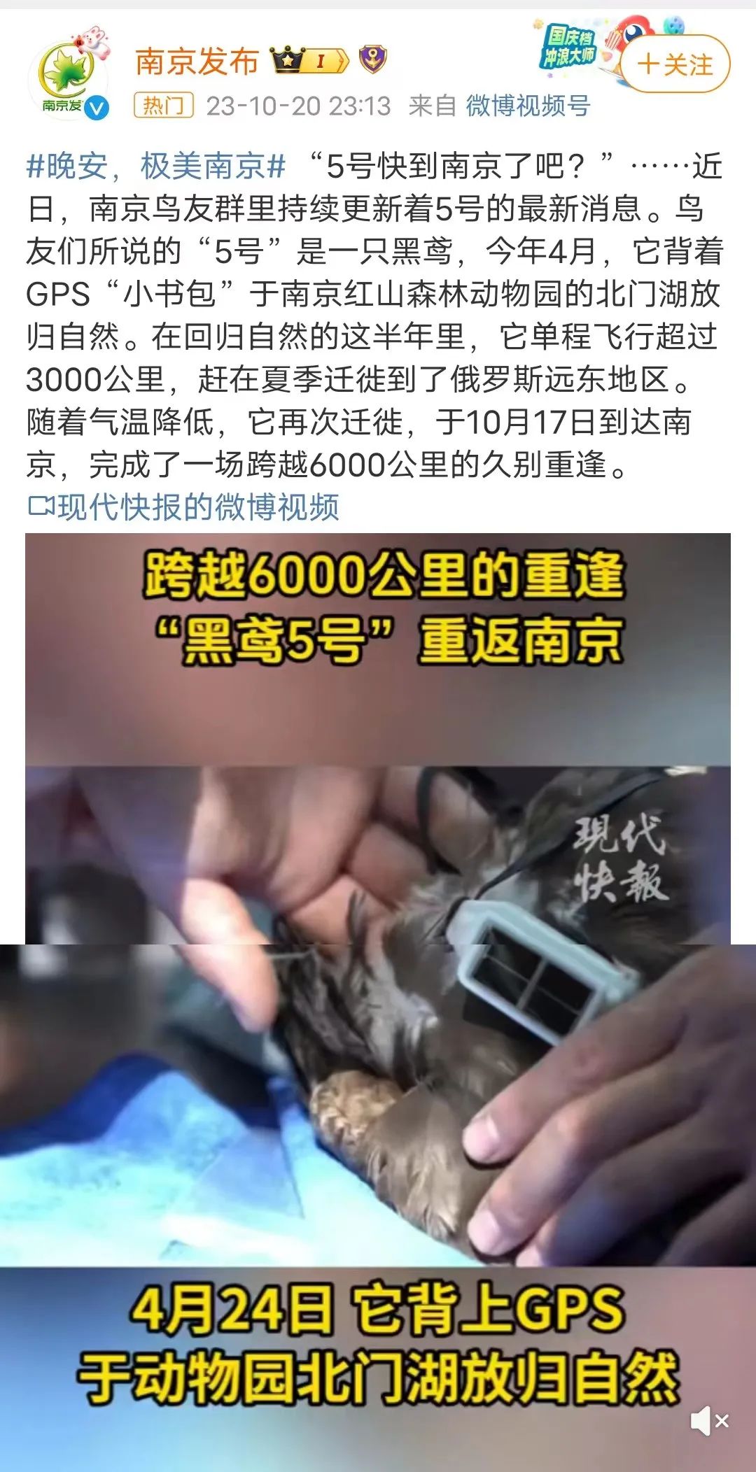 不久之前江蘇的鳥友們收到了一個好消息,紅山動物園救助的一隻黑鳶“5號”,在10月15日從老鐵山成功渡海進入山東,17日抵達南京。