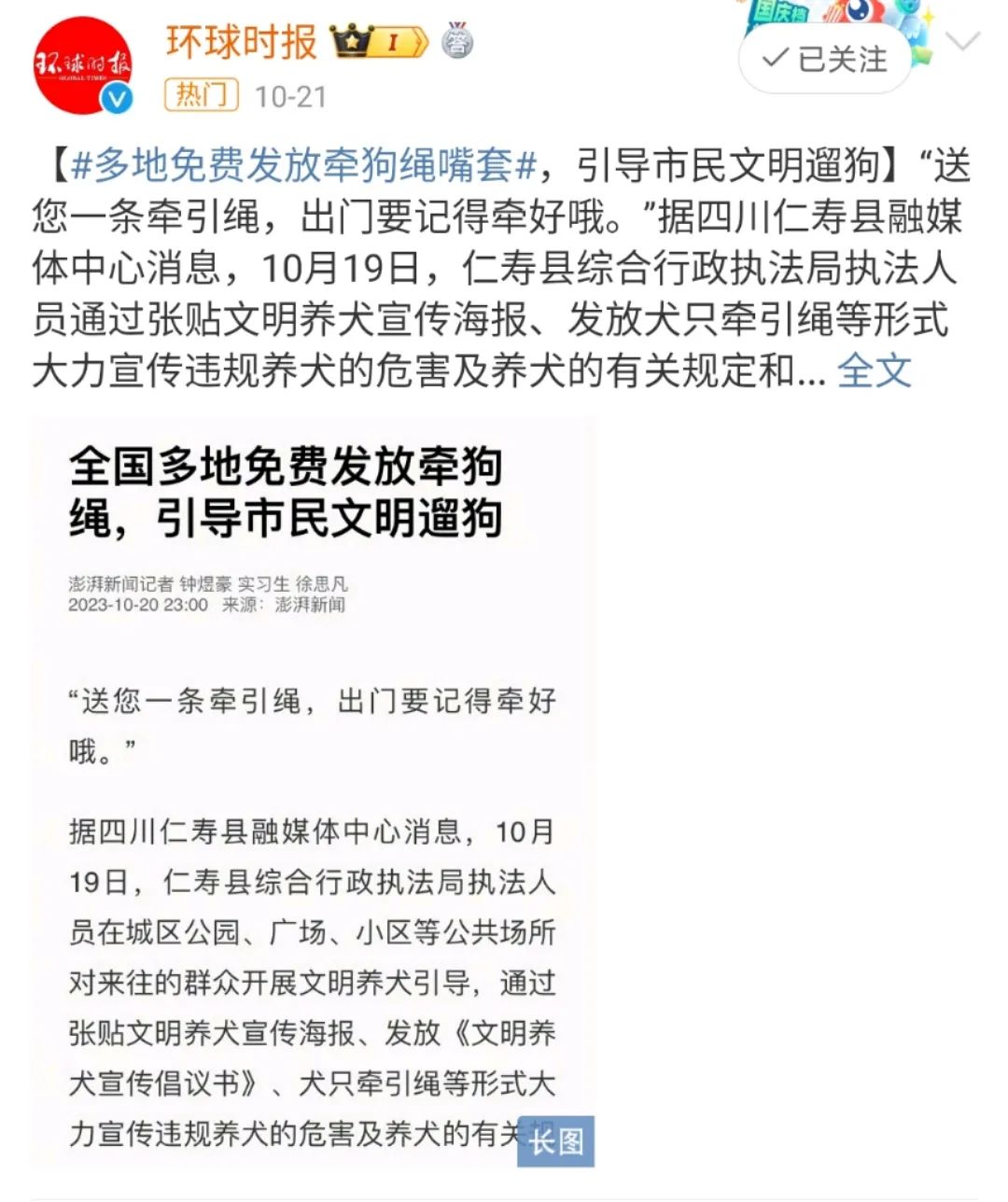 ▲比如許多地方都在免費發放遛狗繩、嘴套