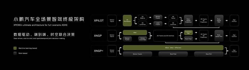 XBrain由XNet2.0深度視覺神經網絡,和基於神經網絡的規劃與控制系統XPlanner共同組成,前者將小鵬智駕的視覺態勢感知能力提升到了前所未有的高度,如視覺感知範圍提升了200%;後者能讓小鵬智駕更像人,比如可以預判你的預判,邏輯推理能力更接近人等。