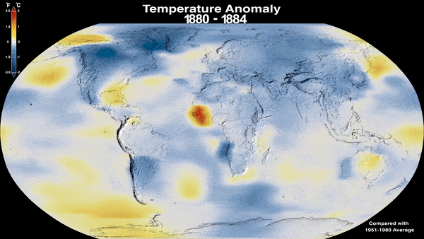 全球變暖其實是指 “從長期來看,全球地表平均温度在工業革命以來越來越高”,而温度的增加在時間上並不是持續的,在空間上也不是均勻的。從時間上看,我們經歷了1998-2012年所謂的“全球變暖停滯”,在空間上看,全球很多區域的地表温度在過去40年來沒有顯著變化,甚至還減小了不少。