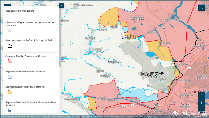 ▪️俄羅斯奪取了垃圾山後,烏克蘭部隊試圖奪回但沒有成功。控制這個高地使得俄軍可以監視阿瓦迪夫卡本身和其補給通道。同時俄軍正在繞過垃圾山向焦炭廠發起攻擊。