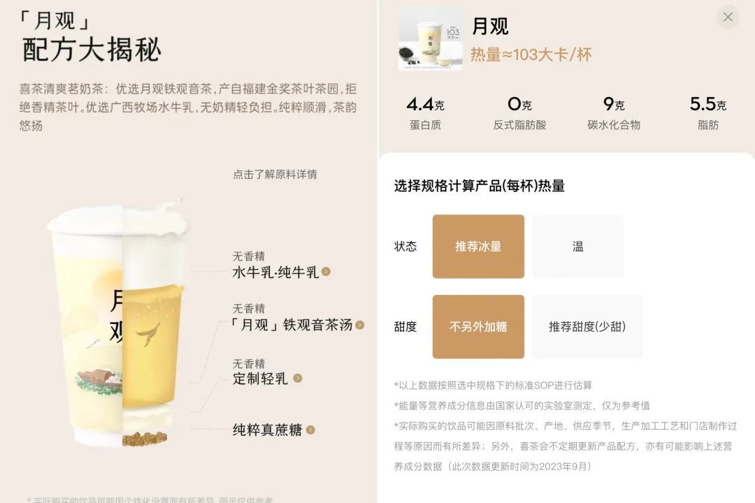 10月26日,喜茶宣佈公開所有在售產品的配方原料、營養成分和原料溯源信息。