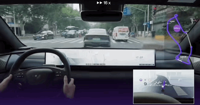 全程包含了城市高頻使用場景,比如上海浦東區CBD,這屬於城區內的NOA功能;還包括上下匝道、隧道內的連續領航輔助,以及複雜路口的人車混行等等。