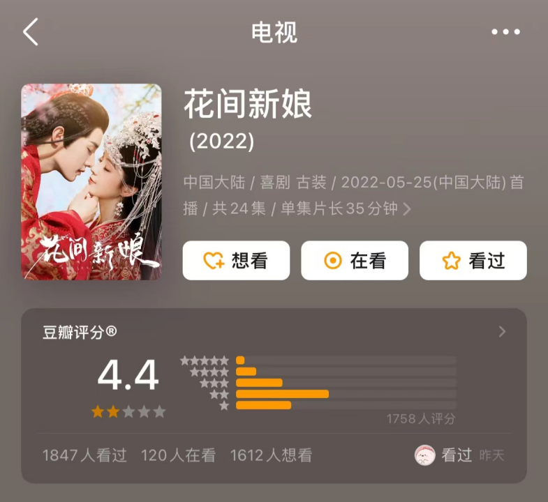 何況甜寵劇發展乏力的狀況也不容忽視。17年《雙世寵妃》的成功讓市場看到了甜寵劇的潛力,19年影視劇市場迎來了甜寵劇類型的大爆發,足足上線了106部甜寵劇,20年也有《傳聞中的陳芊芊》等甜寵爆款劇出現,近幾年市場上的甜寵劇數量依舊不少,但鮮有爆款、出圈的作品,2022年的一干甜寵劇如《花間新娘》《千金難逃》《惹不起的千歲大人》,評分與口碑都不甚理想。
