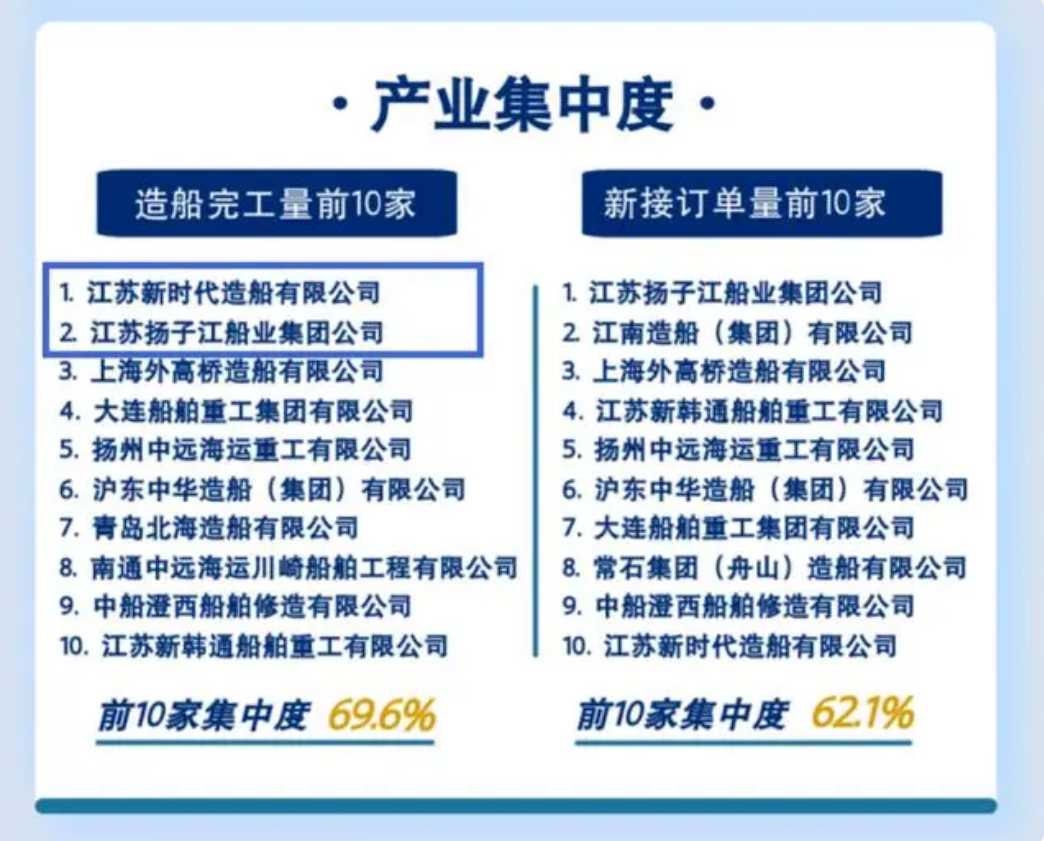 這其中,來自靖江的揚子江船業繼續保持全國手持訂單的第一,另一家新時代造船的完工量則排名全國第一。