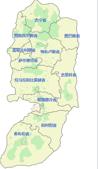 ▲巴勒斯坦約旦河西岸地區省份(名義上)