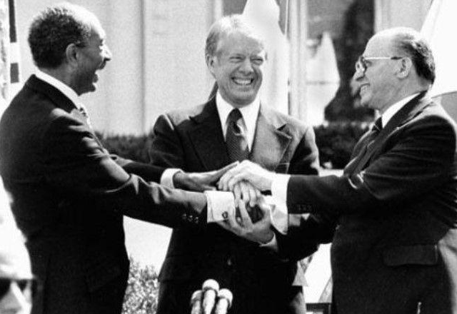 以色列面臨着嚴峻的國際局勢。為了緩解周邊環境,1979年,以色列和埃及達成了戴維營協議。以色列將西奈半島歸還埃及,以埃關係正常化。但這個也對巴解組織產生了打擊。意味着埃及的對以政策將不像之前那樣強硬。