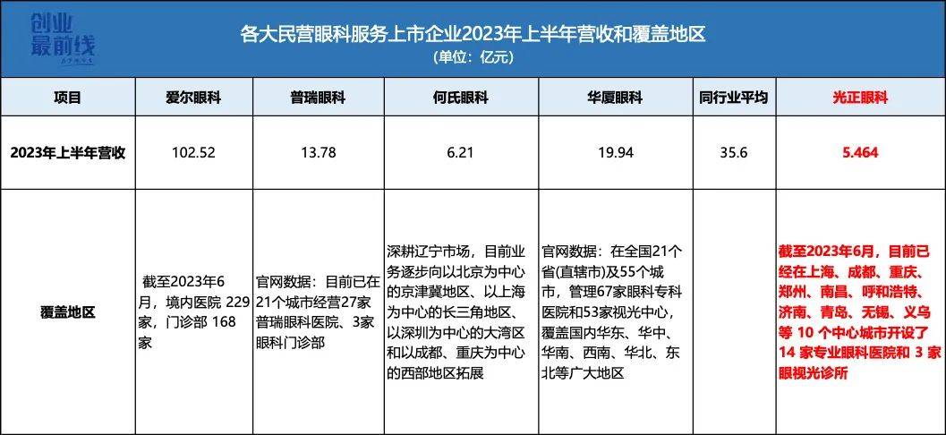 2023年上半年,從營收規模上來看,頭部企業愛爾眼科是光正眼科的19倍,光正眼科在行業內屬於尾部企業。