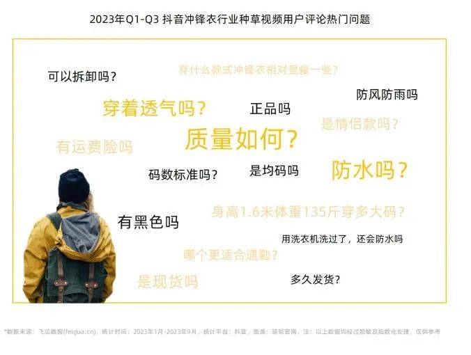 2023年Q1-Q3,抖音電商平台衝鋒衣種草視頻用户評論關注點: