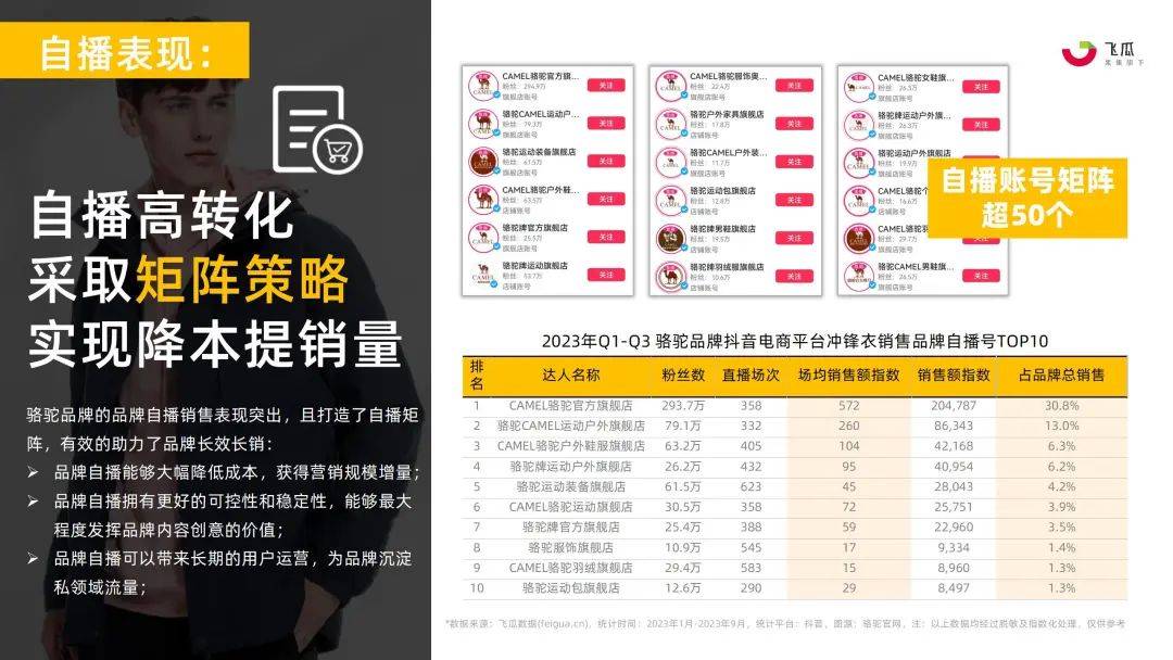1、2023年Q1-Q3,駱駝品牌銷售額近10億,市場佔有率達34.6%;