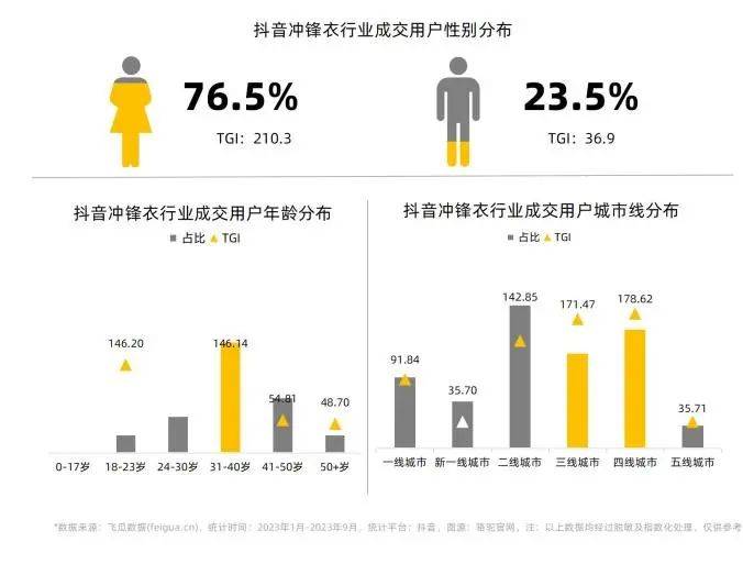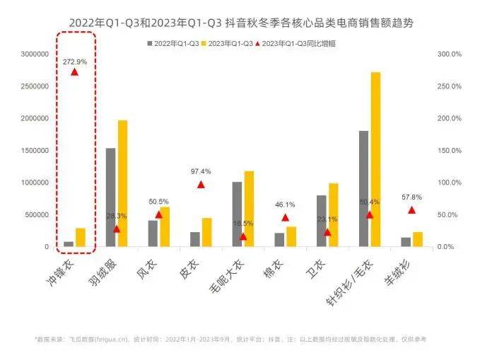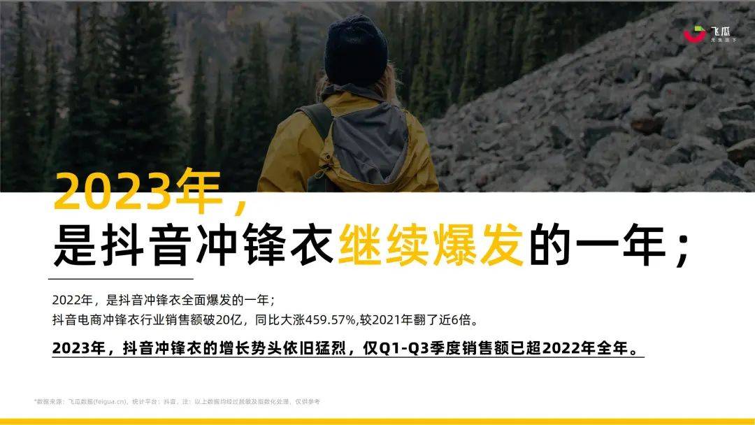 1、2023年Q1-Q3,抖音衝鋒衣市場銷售額超25億,同比增長273.03%;