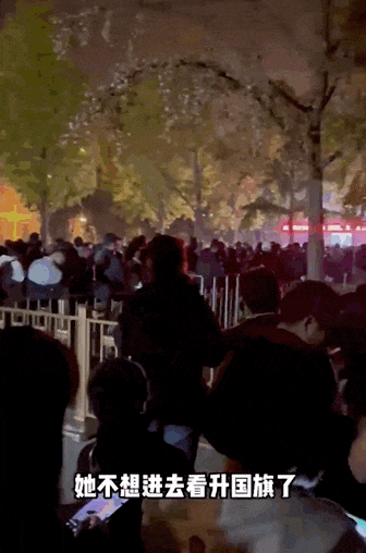 她聽到了這些輕微的聲音,但慢慢不那麼在意了。她感受到周圍人的善意,當臨近升旗,她隨着人羣一齊向前擠,一位大爺把自己的板凳讓給她,讓她站上去;也有人鼓勵她穿過人羣,站到最前去。還有人想把她舉起來看,她都拒絕了。