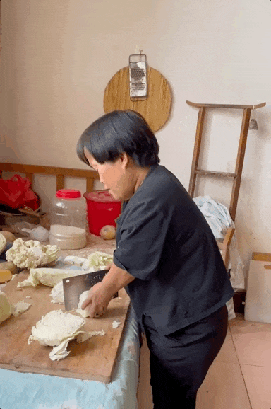 婚後,她要照顧長輩和孩子,生活徹底被限制在了那一方小小的天地裏。因為個矮,她甚至只能在牀上鋪案板,切菜,做飯。直到近幾年,女兒大些,丈夫也更顧家些,生活才稍微有了些幸福的模樣。