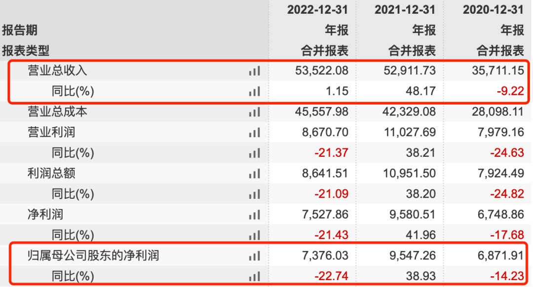 尤其是飲品濃漿,作為公司最大的業務類別,其毛利率由2020年的45.22%下滑至2022年的34.86%,下降了10.36個百分點。