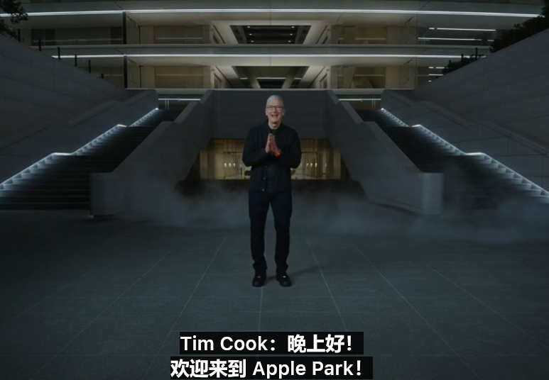 蘋果將這場發佈會戲稱為萬聖節派對,名曰“快得嚇人(Scary Fast)”。CEO蒂姆·庫克(Tim Cook)在黑漆漆的夜晚穿過霧氣走來,氣氛烘托得很到位。沒有熟悉的“早晨好”,庫克向大家道“晚上好”,開啓了這場發佈會。