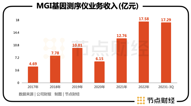 拉長時間軸,除開2020年疫情的負向衝擊,其基因測序儀業務一直穩步上揚,2023年前三季度17.29億元的體量,相當於2022年該板塊的98.35%,全年創新高几無懸念。