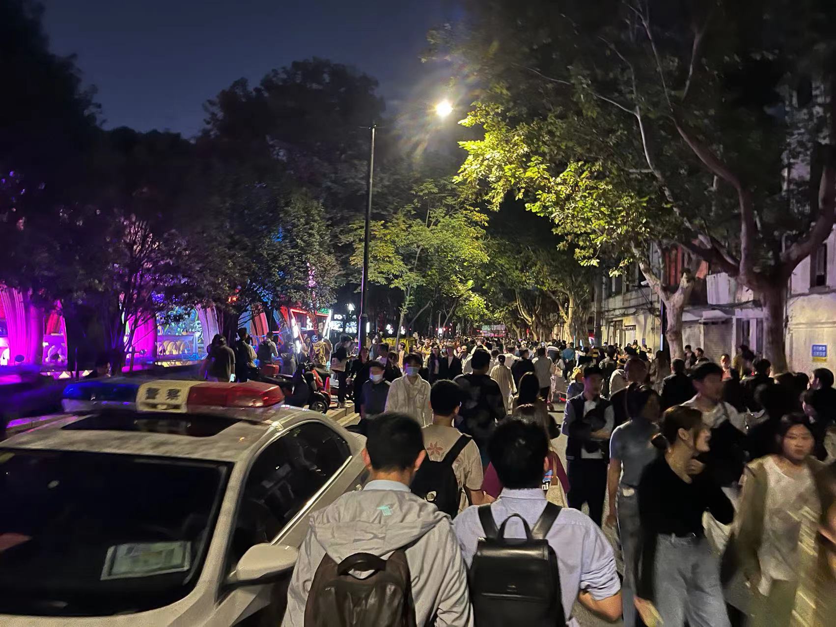 必須得説,作為三十幾歲的310老爺叔,我對這次上海街頭的萬聖節活動是“木知木覺”,以至於10月31日晚我老婆提出想去鉅鹿路時我還白了眼:那邊好停車麼?想啥啊?嗯,後來才知道鉅鹿路那就是上海街頭萬聖節的核心區域,大家都在那邊玩呢,而我知道時已經是第二天了。本來10月31日已經是萬聖夜了,11月1日理論上應該也沒啥街頭萬聖節活動了。但一看今天還在發佈鉅鹿路的交通管制通知,就猜應該還有街頭萬聖節活動(或者説有關部門判斷會有),那自然去看看這個“萬聖節”活動到底如何了。比較有意思的是,**在相關官方通告裏,反覆強調今晚沒有組織任何活動,但依然實行了交通管制。**以至於我腦中都腦補出這樣的畫面了:我和你們説,真沒有啥萬聖節活動啊!你們非要來的話,那……那就在這塊地方玩吧……
