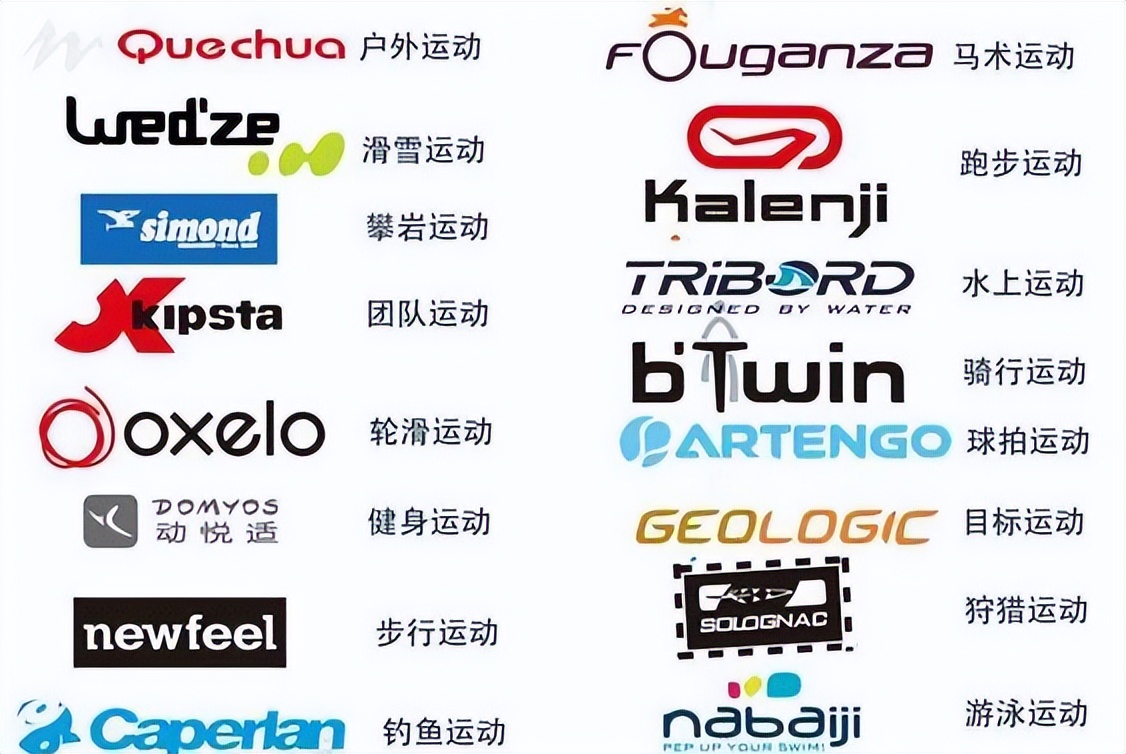 1996年,迪卡儂創設最早的獨立品牌:水上運動用品系列品牌“Tribord”與山地運動用品系列“Quechua”上市,相繼創設的還有Kipsta團隊運動用品系列,Kalenji涉足運動用品系列,Artengo球類運動系列,Domyos健身、跑步、武術系列品牌等。