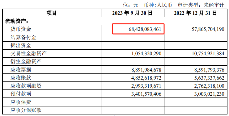 截至2023年9月30日,海螺水泥貨幣資金高達684.28億元,佔公司流動資產比例高達65.74%。
