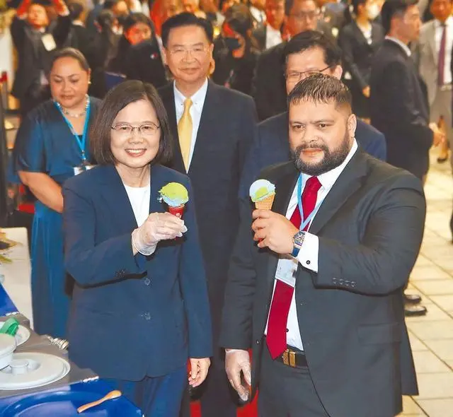 時任瑙魯總統的庫恩(右)日前竄台,還與蔡英文一同品嚐冰淇淋