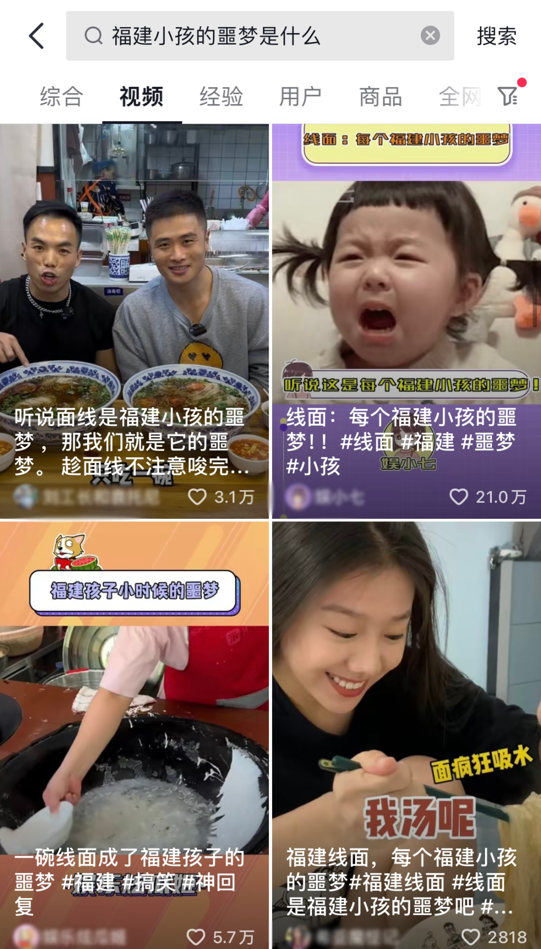 最近,線面火到了社交平台上,關於「線面是福建小孩兒的噩夢」的傳言,也開始在各大平台浮現,甚至出現了層出不窮的「吃線面挑戰」。