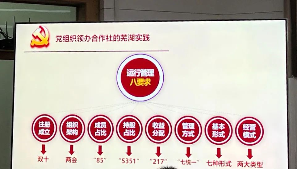 因此,我認為未來中國的農業一定是智慧農業,並且已經在路上。這次我們看到,蕪湖的黨組織領辦合作社做得非常好,再組織起來的新型合作社具有強大的生命力。目前在基層,蕪湖政府已根據當地各自的基本情況分發了合作社工作指導手冊,這還屬於傳統的方式,畢竟處於起步階段(2年)。