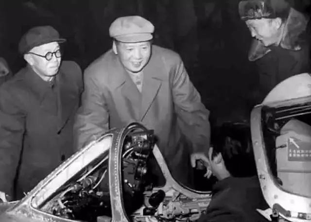 1958年2月13日,毛主席在趕往撫順前,就近視察松陵機器廠(瀋陽飛機製造廠),詢問第一架國產噴氣式殲擊機(殲-5)的性能等情況。