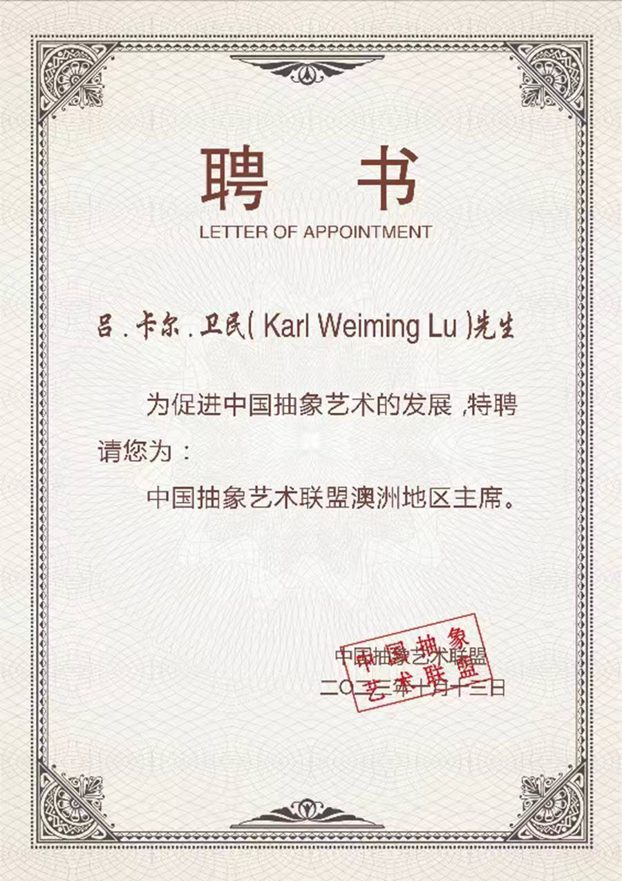 當代科技哲學藝術家呂.卡爾.衞民當選中國抽象藝術聯盟澳洲地區主席