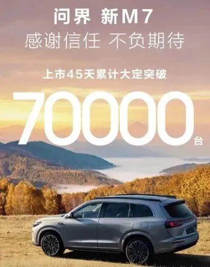 在10月16日,問界官方消息稱新M7大定突破6萬輛,在10月28日,問界宣佈新M7上市45天大定突破7萬輛,在11月1日,問界宣佈上市50天其新M7最新大定就已經突破了8萬輛。