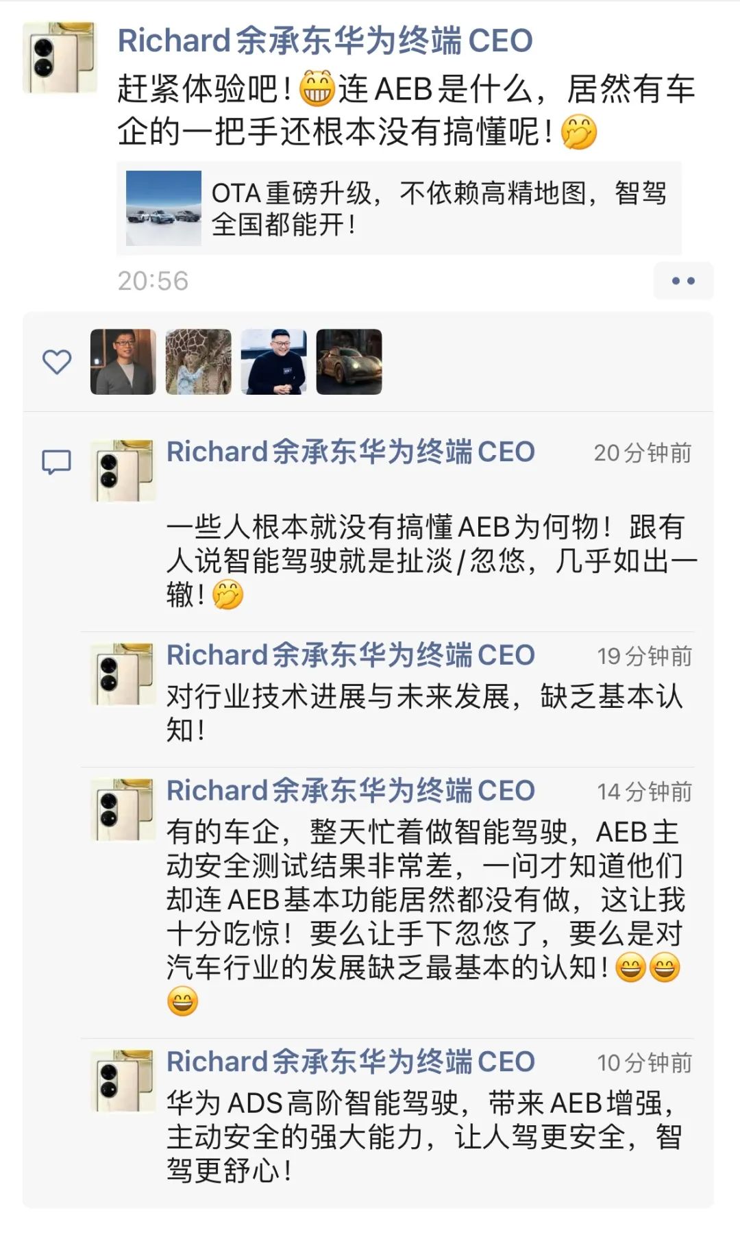 餘承東為什麼在這個時候開炮?他提到的AEB是什麼?友商又是誰?