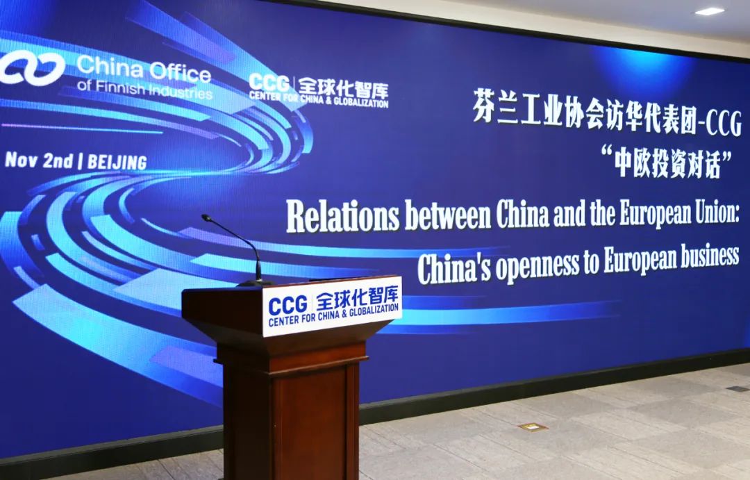 2023年11月2日,全球化智庫(CCG)舉辦了“中歐投資對話”閉門交流會,與會嘉賓圍繞中歐經貿合作、中歐關係與世界秩序及當前國際熱點議題開展互動交流。包括芬蘭駐華大使孟藍(H.E. Leena-Kaisa Mikkola)和20餘位來自芬蘭的工商界代表在內的多位人士出席了本次閉門交流活動。CCG理事長王輝耀、CCG秘書長苗綠、CCG副主任高志凱、CCG副主任劉宏、CCG研究員吳夢啓、CCG研究員王子辰、CCG研究員劉虹參與了本次研討和分享。