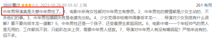 沒錯,看上去,這就像是一部套着文藝片殼子的中年男人傑克蘇故事,無怪不少觀眾評價“油膩”“無病呻吟”“中年直男對年輕女性的想象”。
