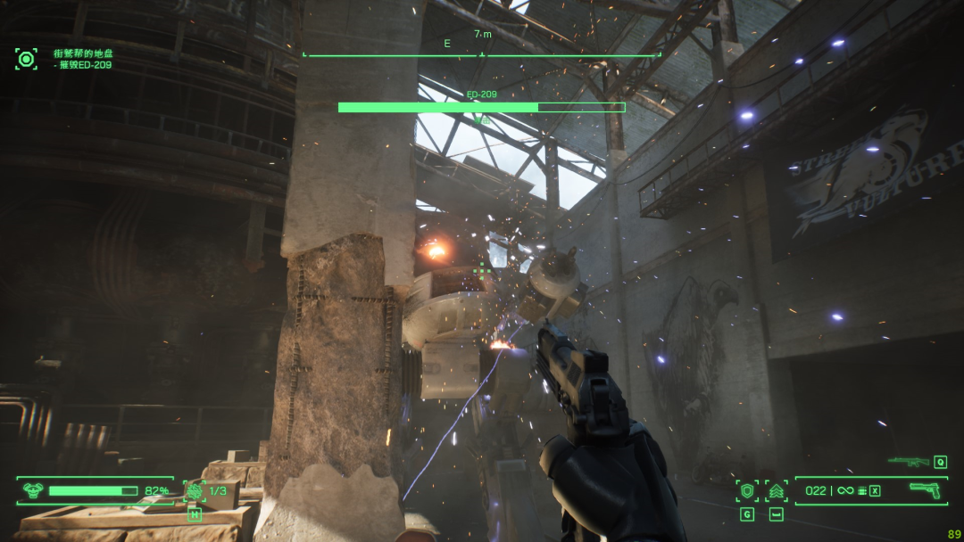 另一大內容則是PCB芯片。它看似是《賽博朋克2077》裏的裝備插槽,但升級內容只對Auto-9有效。尷尬的是,在大多數戰鬥中,比起Auto-9我更樂意去撿地上的武器。畢竟在講求爽快感的射擊遊戲裏,能一槍秒殺敵人的大口徑武器,對玩家顯然更有吸引力。