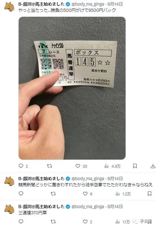 **那麼B-銀河是因為想要畫馬娘澀圖才買了一匹馬的嗎?答案應該是否定的,他可能很喜歡畫澀圖,但他同樣也很喜歡賽馬。**在他往日的發言信息裏就可以看到他對賽馬的喜愛,幾乎一半是澀圖,一般是講馬。