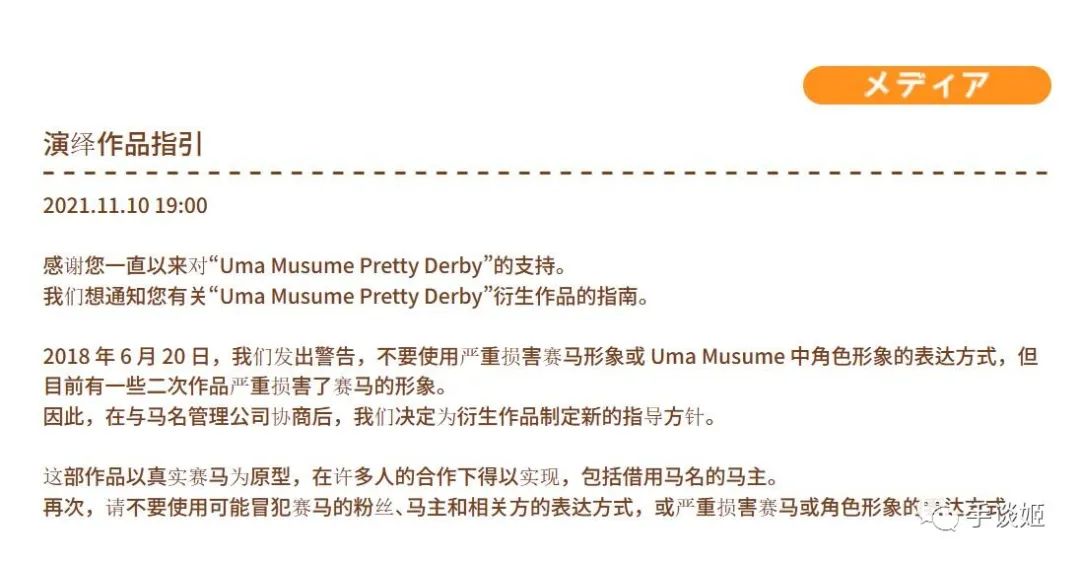因此,這B-銀河購買馬兒就被理解為以後可以光明正大畫馬娘澀圖的操作方式了。但這裏也有問題是,B-銀河購買的這匹馬,有沒有作為原型出現在《賽馬娘》裏面?按照姬的調查是沒有的,這馬還沒出道呢,所以在目前來説,他畫自己馬兒的娘化澀圖是ok的,但是他畫《賽馬娘》裏的馬孃的澀圖,可能照樣會收到cygames寄來的問候。
