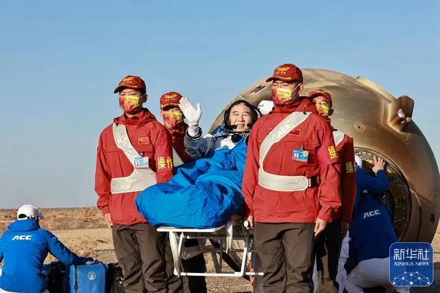 神舟十六號返回艙及宇航員出艙 圖片來自新華社 李剛攝