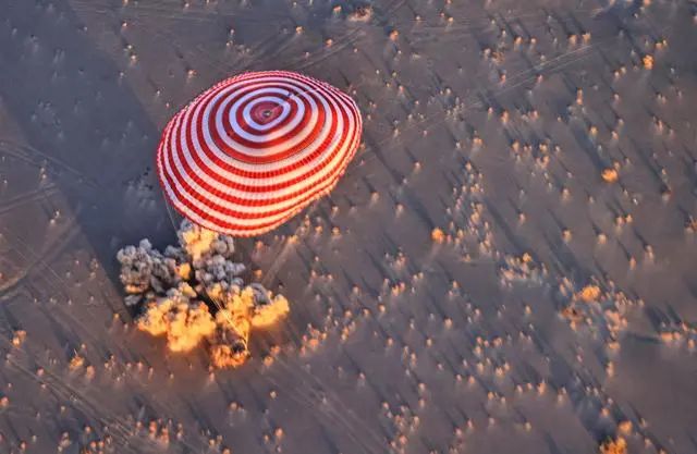 拋掉防熱大底後,返回艙繼續降落,最後落地前還會點燃幾個固體反推火箭,最後剎個車,好讓航天員們平安落地。