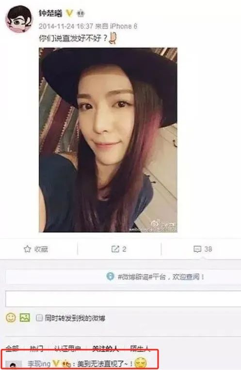 最曖昧的,是李現在鍾楚曦的偶像湯唯的微博下,@鍾楚曦説了一句廣為流傳的虎狼之詞: