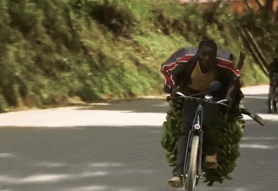 真正的大師,從來不挑裝備。沒有上過一天學的奧德彪們,**無師自通完美掌握空氣動力學並純熟應用。**半報廢的二八大槓,在山路上一次次突破物理極限,被奧德彪們馴服得明明白白,基基齊山車隊總指揮一聲令下,香蕉軍團有條不紊,目標一致,保持相對靜止,向山下衝鋒,訓練有素程度比起布隆迪政府軍有過之而無不及。