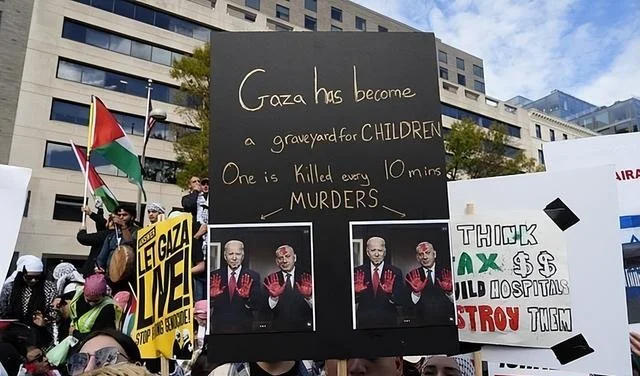 美國首都超10萬人集會,抗議拜登支持以色列,稱他是“兒童殺手”_風聞